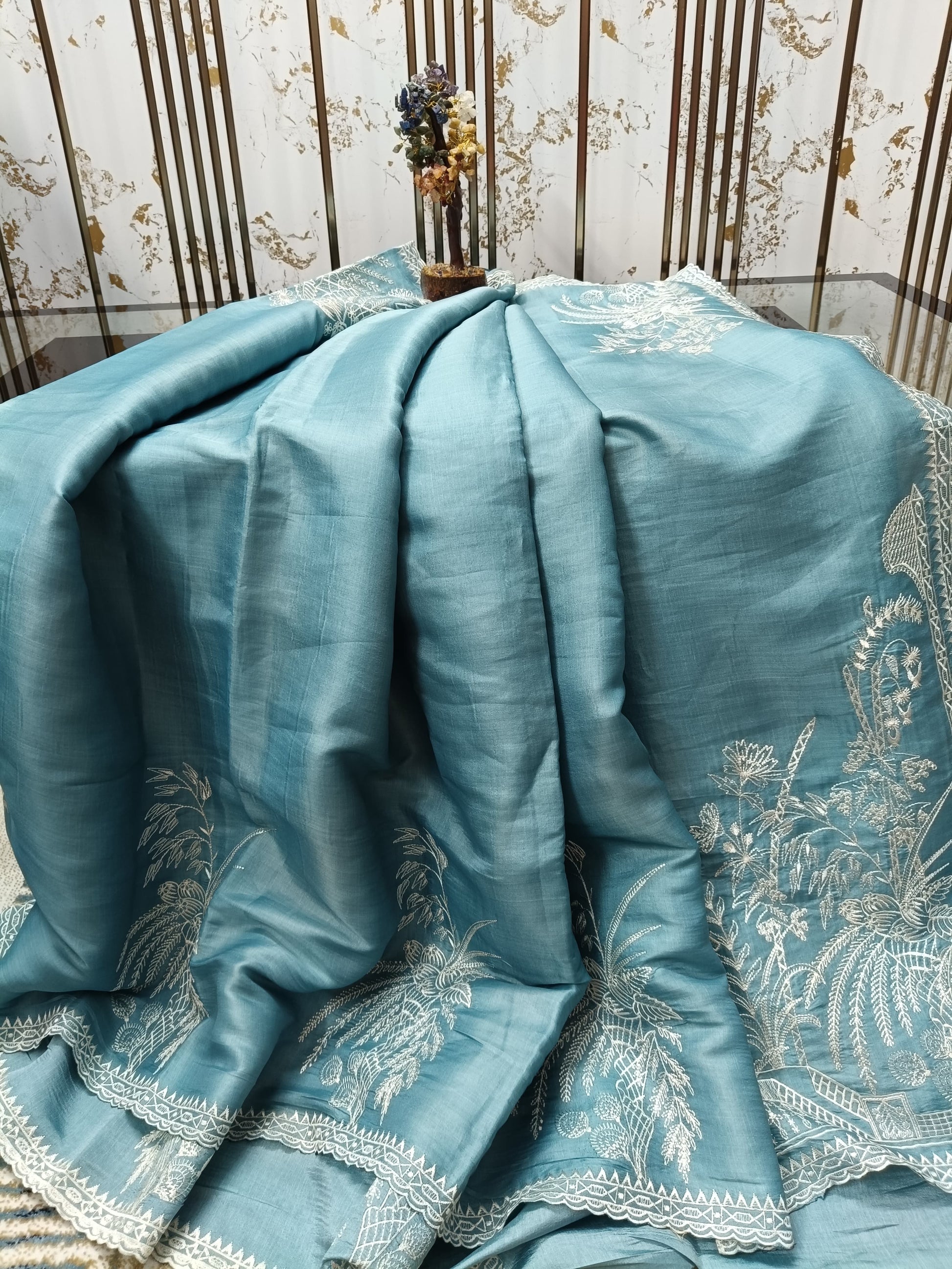 Dobby Tussar sarees combine the raw elegance of tussar silk with the intricate charm of dobby weaving, making them timeless pieces of art. These sarees stand out for their natural sheen, soft texture, and subtle patterns that add depth without overwhelming the fabric. Perfect for both casual sophistication and festive occasions, dobby tussar sarees drape gracefully, offering comfort with understated luxury. Each piece reflects traditional craftsmanship while staying versatile enough for a modern wardrobe.
