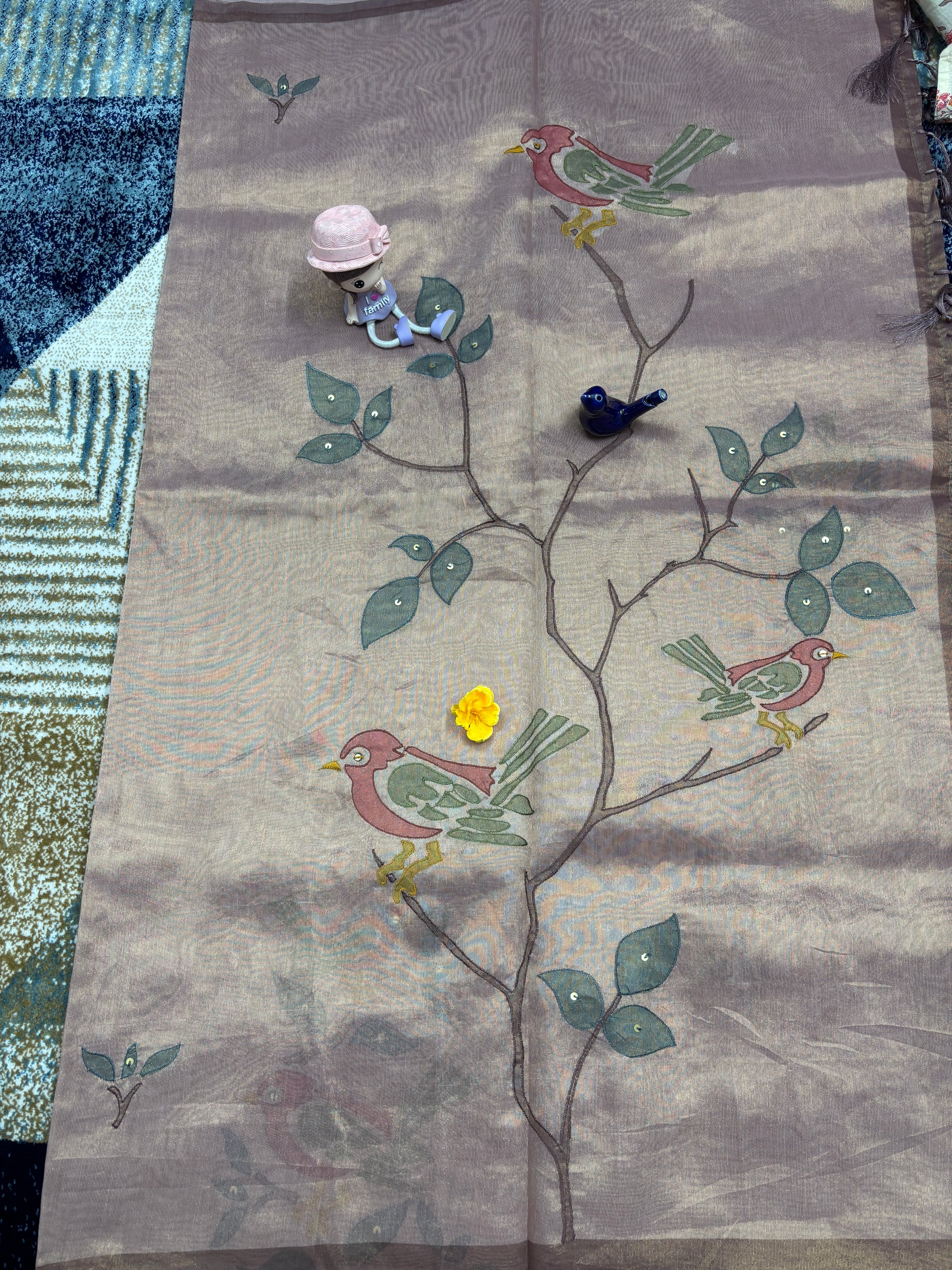 Experience the ethereal beauty of Mul Chanderi silk sarees embellished with exquisite applique work. Crafted from pure mulmul (finest muslin) Chanderi fabric, these sarees are ultra-lightweight, breathable, and possess a subtle natural sheen. The delicate applique artistry adds texture and intricate detailing, creating a captivating blend of traditional craftsmanship and contemporary elegance. Perfect for festive occasions or elegant daytime events, this saree offers a graceful drape and timeless sophistication that complements any wardrobe.